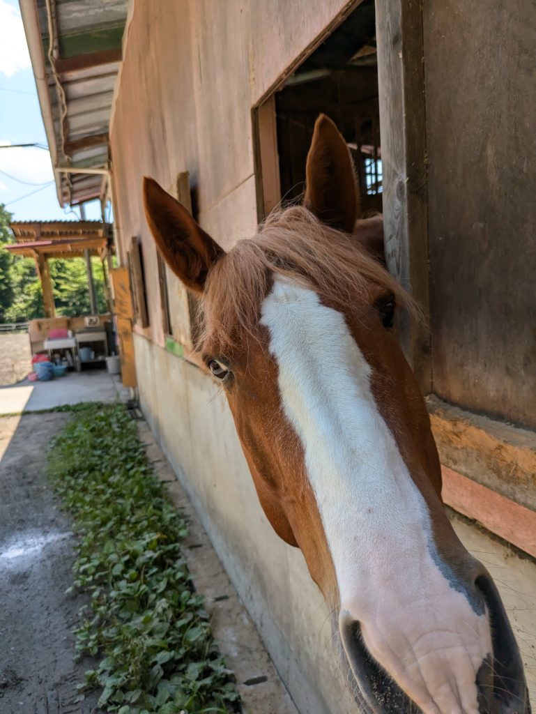 馬房の中は馬のテリトリーゆえ あまり深追いせず でもサラリと馬房の前に僕が近づくと・・・!?