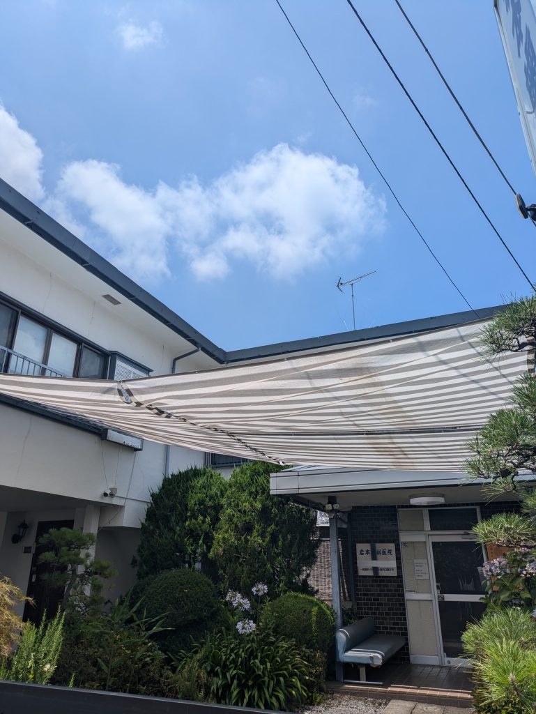 昨日日曜日は 前日の屋内運動効果バッチリで 朝早くの目覚め、なので時間の有効活用で 朝 まだ熱地獄が始まらないうちに 庭全面を日陰にする巨大タープの設置を完了させました、