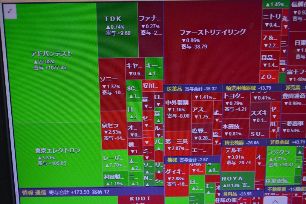 随分前にも載せたけど 日経平均構成寄与度ヒートマップって~のがあって