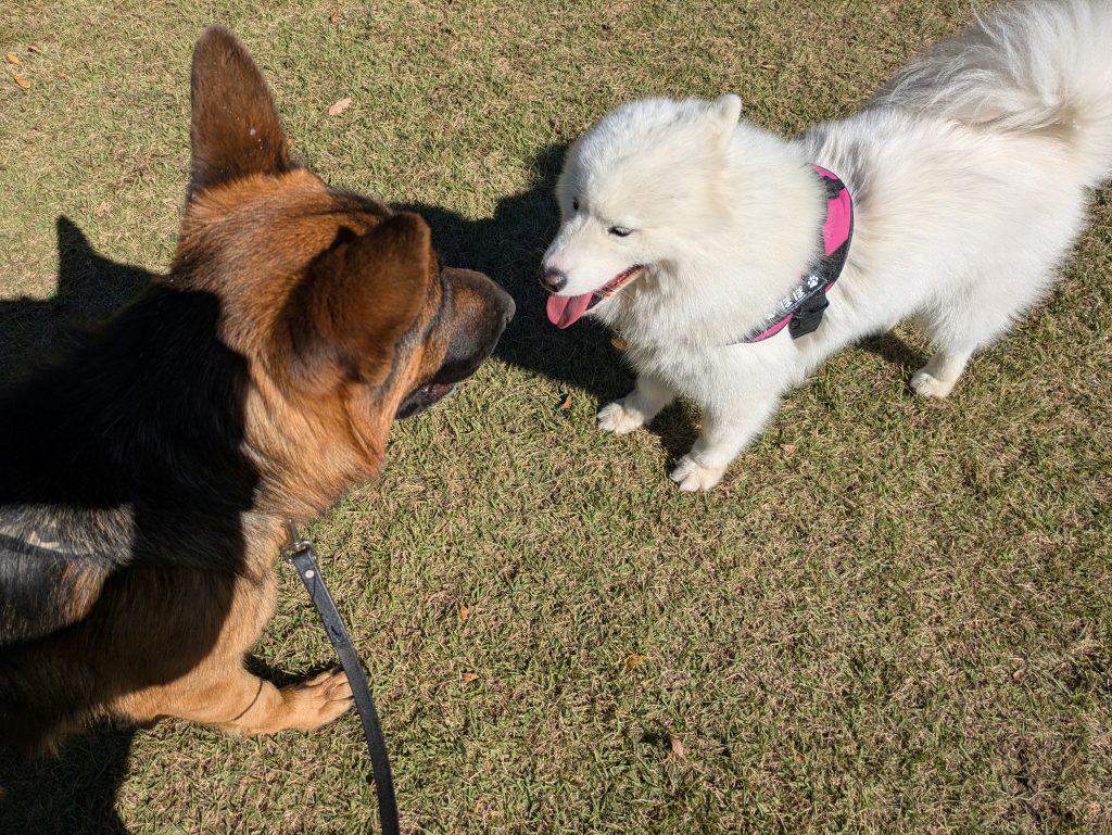 どのワンコもまずそうですが 自分の居住環境は家の庭とか駐車場に居る時は そして柵で区切られていれば尚更に 縄張り意識?由来なのか よほど知ってるワンコでないと大きな声を出すこともあります、