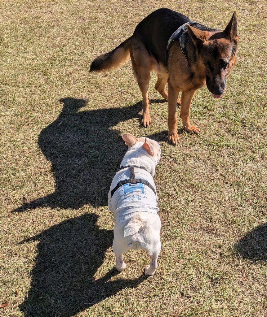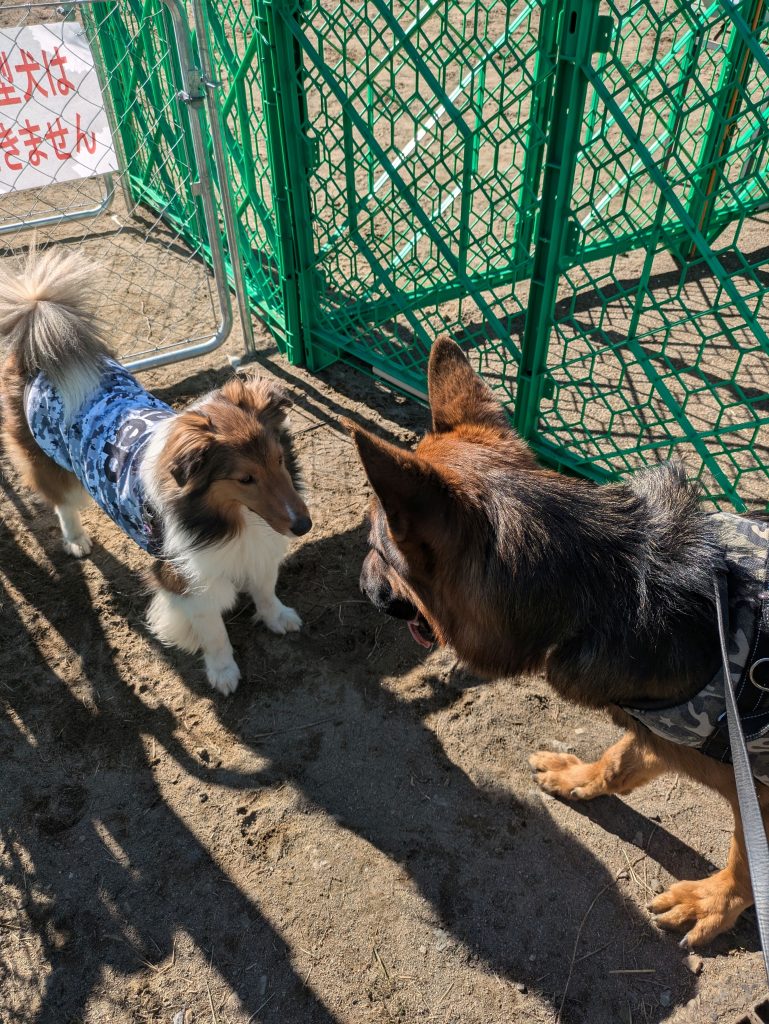 ここから先は 中小型犬は入れないんだって ねえ 僕と遊ぼうよ! と言ってるのか? ソウ君、