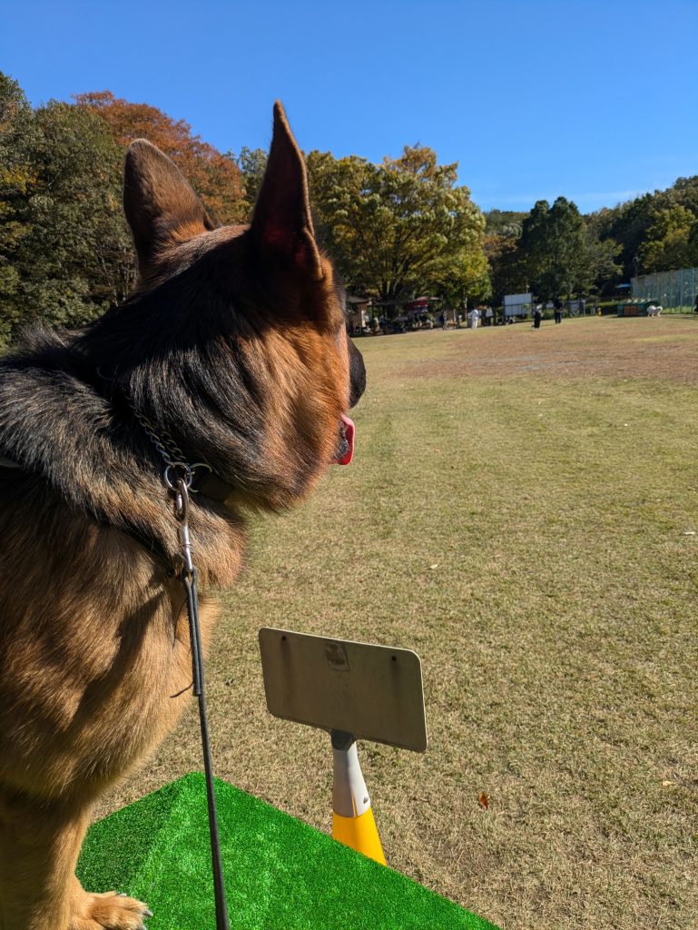ドックランの中のお立ち台?ならぬ アジリティー遊具の上に登り 楽しかった時間を振り返り たそがれる ソウ君、