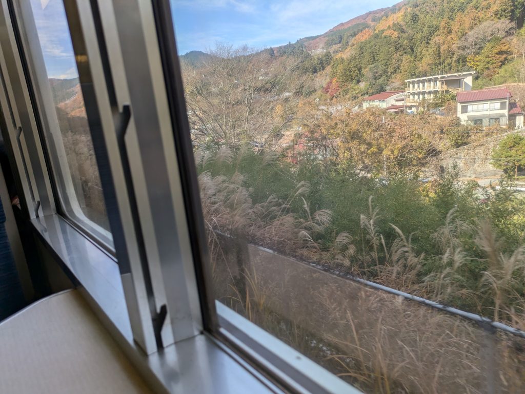 景色が 普段見かける都会方面への車窓は街並みではなく 山 山 山 森 森 森の大自然、