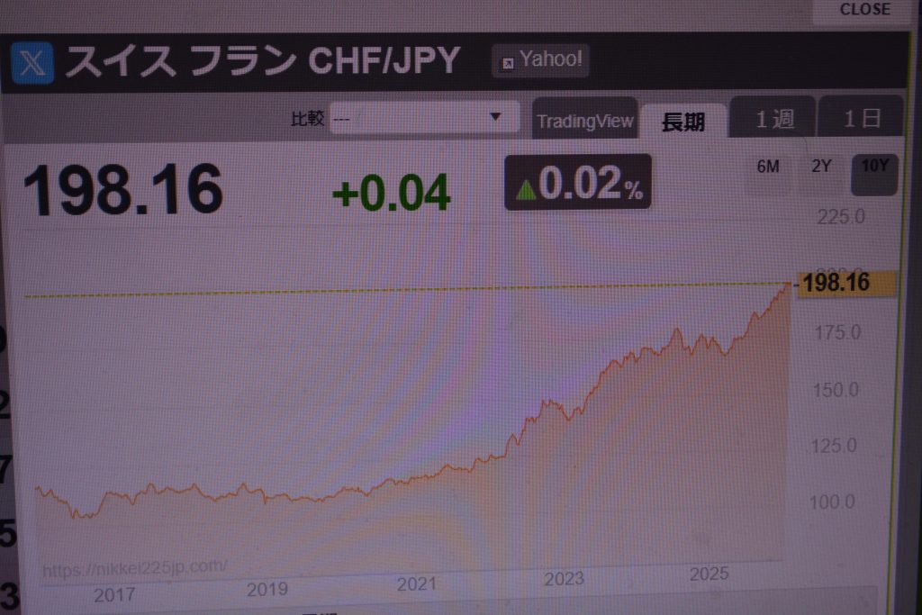 問題イロイロな対ドルでなく 例えば対スイスフランで見れば 昔からただひたすらに円安!