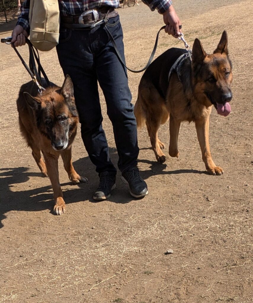 元々はゴールデンレトリバーだったんだけど ゴールデンって5歳超えるあたりから運動量がガク~ンと落ちて 何だか物足りない・・・?? 幾らでも沢山歩けて 時に走れる! そんなこんなな いろいろな流れで ”ジャーマンシェパード君” 2匹となっておりました、